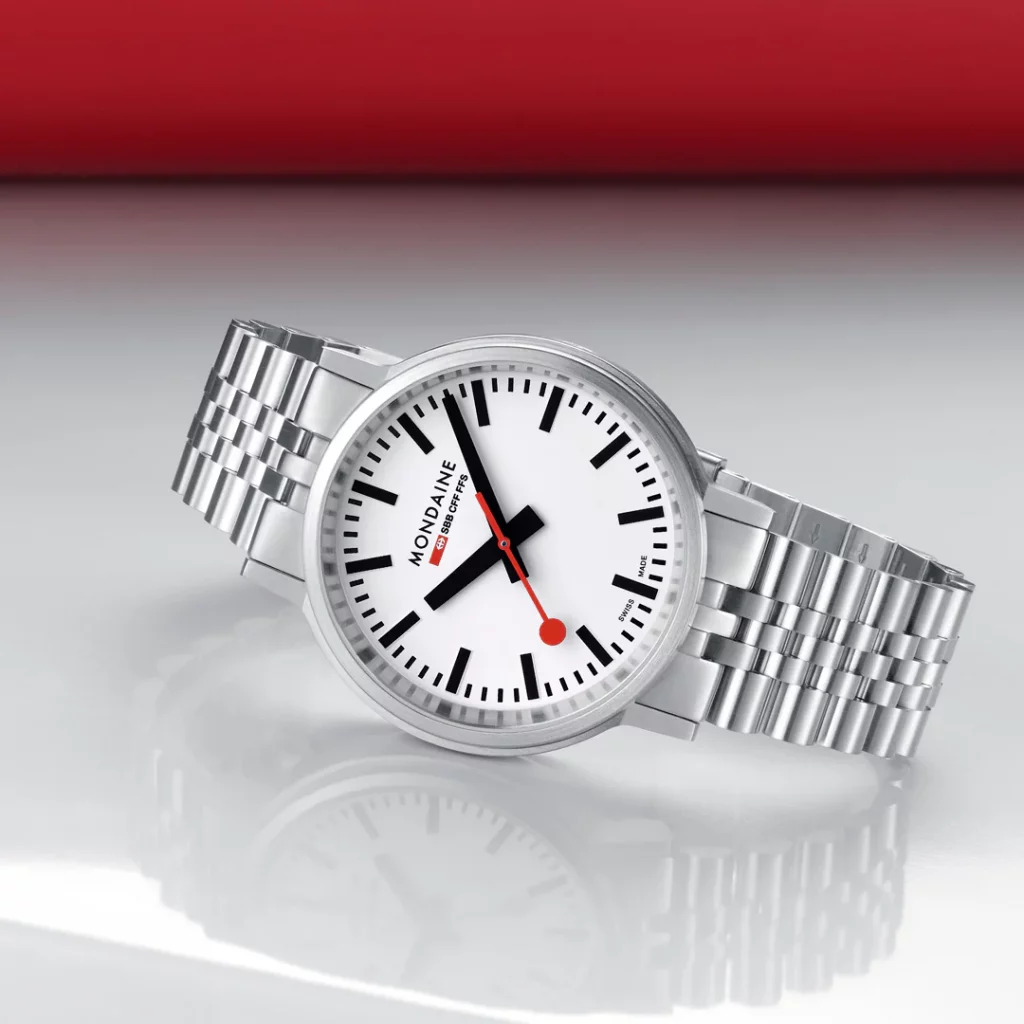 Erleben Sie die offizielle Mondaine SBB Kollektion – inspiriert von den legendären Schweizer Bahnhofuhren, mit präziser Schweizer Technik und ikonischem Design für jeden Tag.